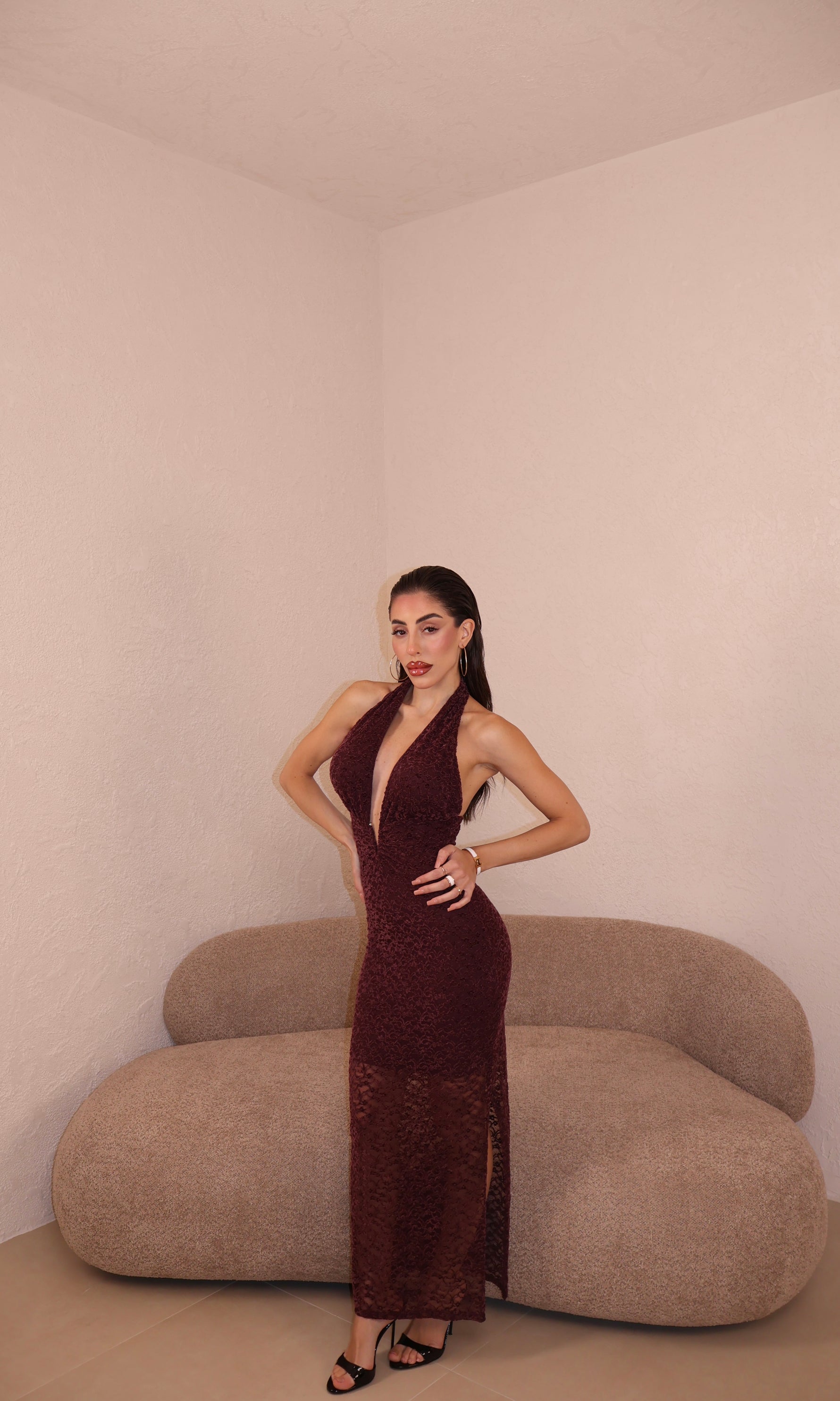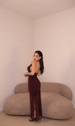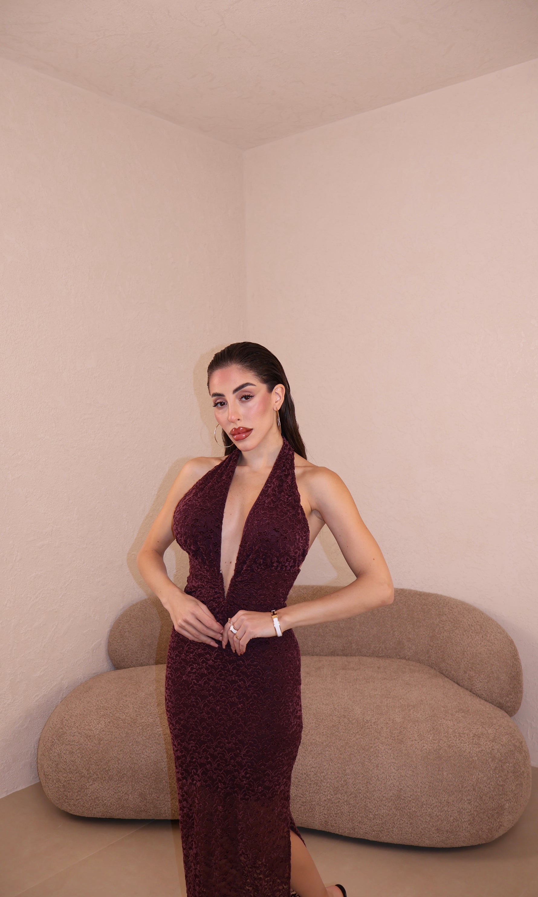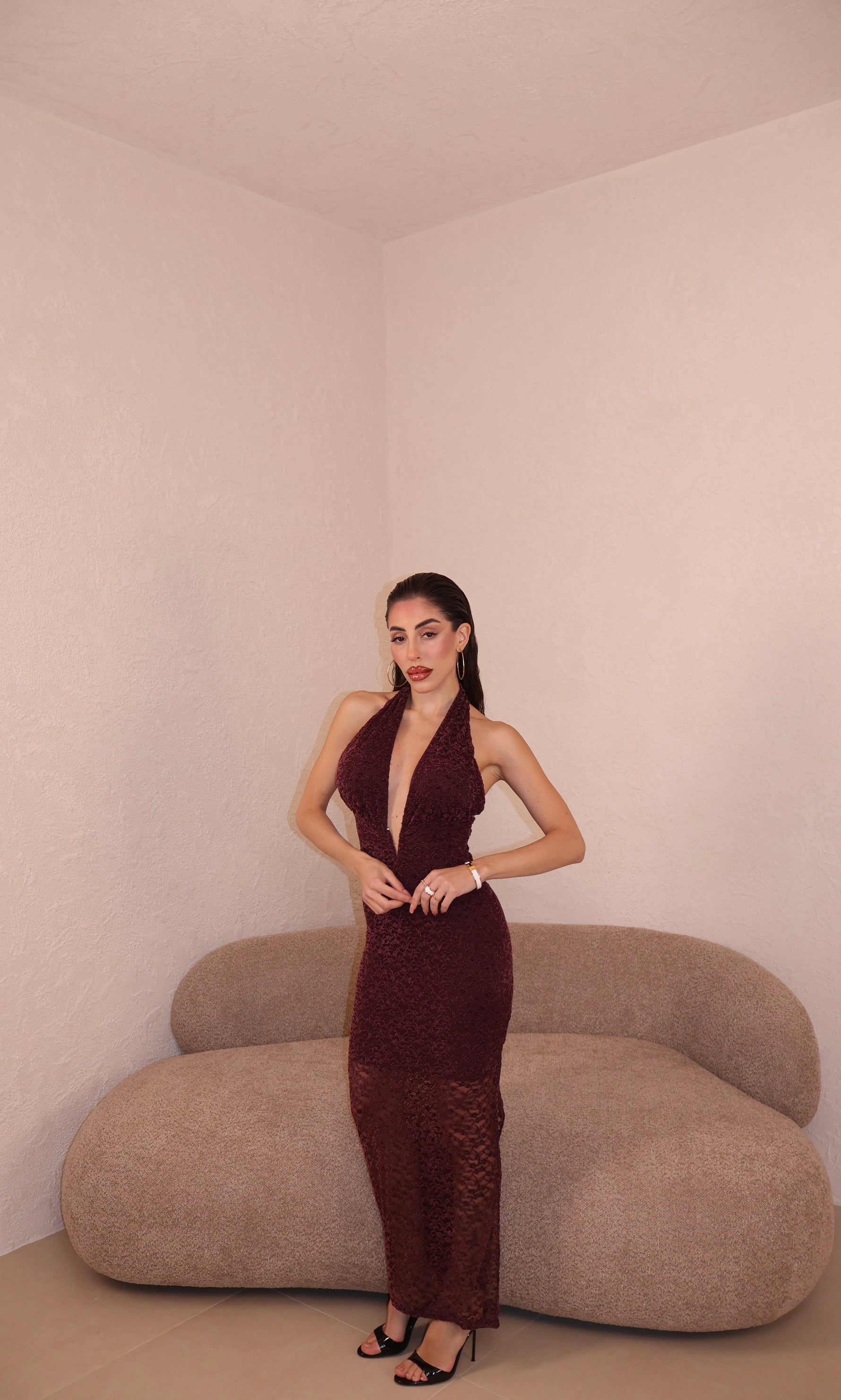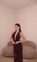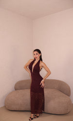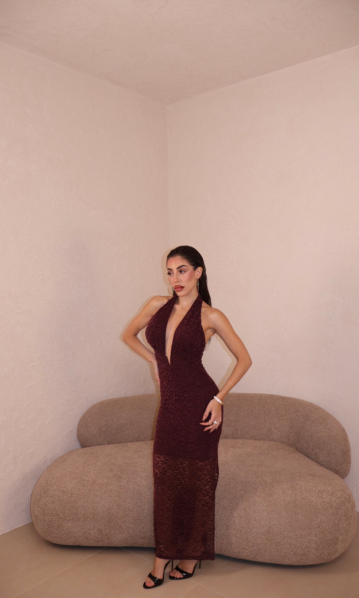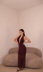 Abito lungo con scollo a V e coppe imbottite. Taglia unica.