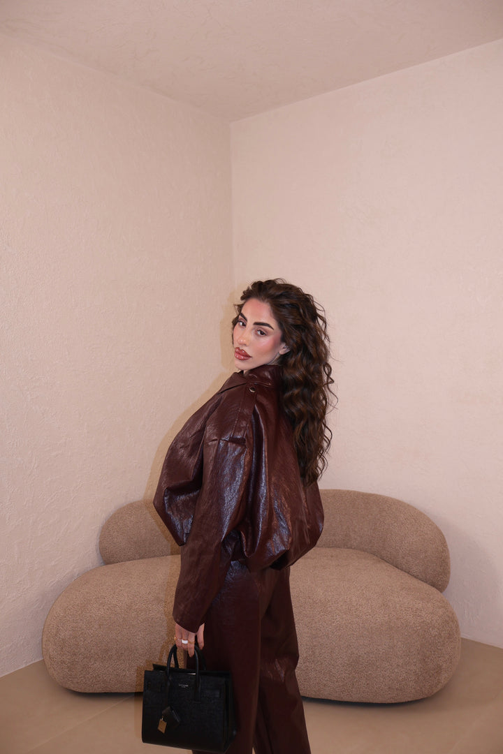 Bomber over in similpelle con cerniera e bottoni. Taglia unica.