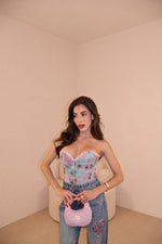 Prezzo unitario / perBustino a fiori con gancetti frontali e laccetti regolabili sul retro. La modella indossa taglia S.