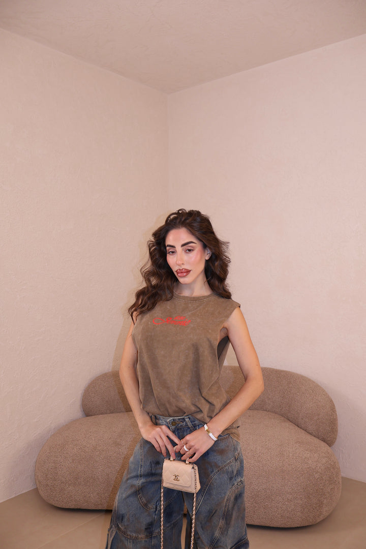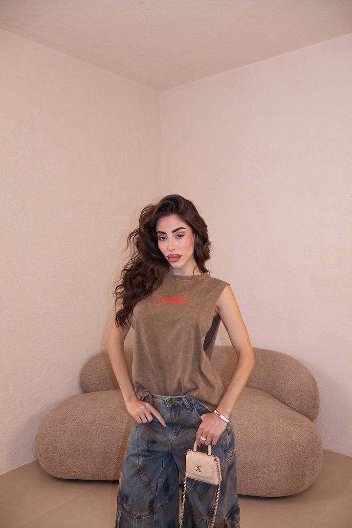Canotta con giromanica ampio e dettagli scritte sul retro. Taglia unica.