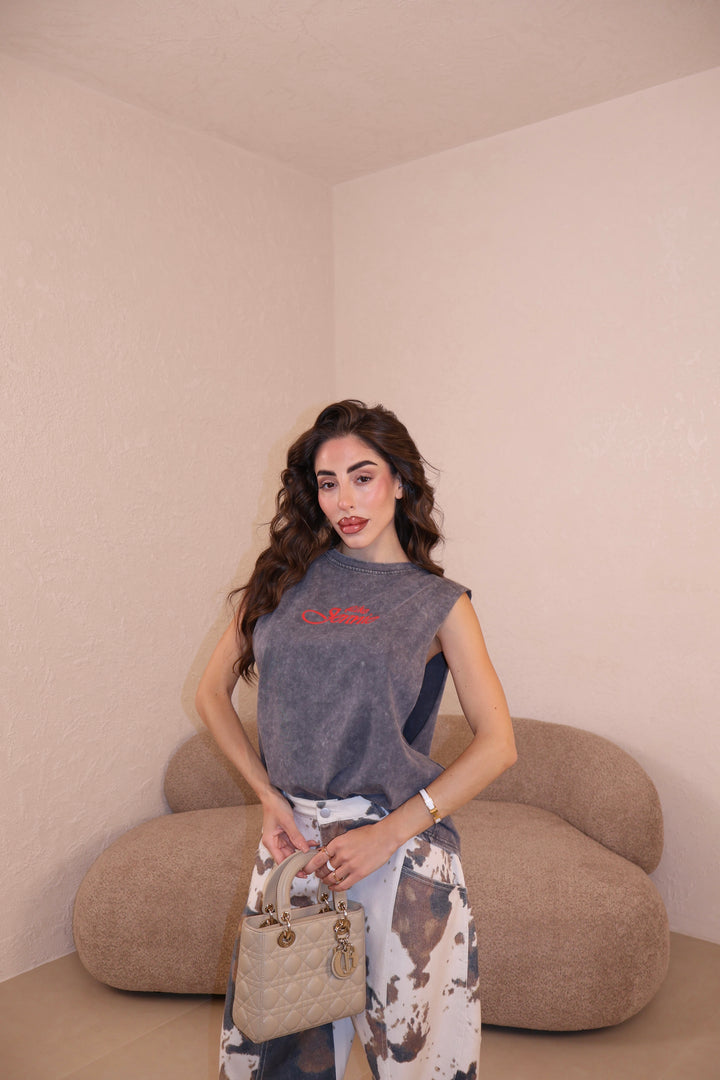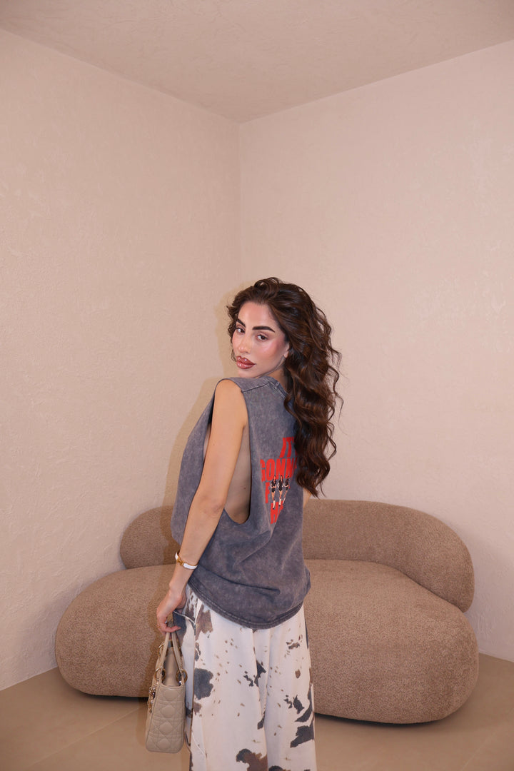 Canotta con giromanica ampio e dettagli scritte sul retro. Taglia unica.