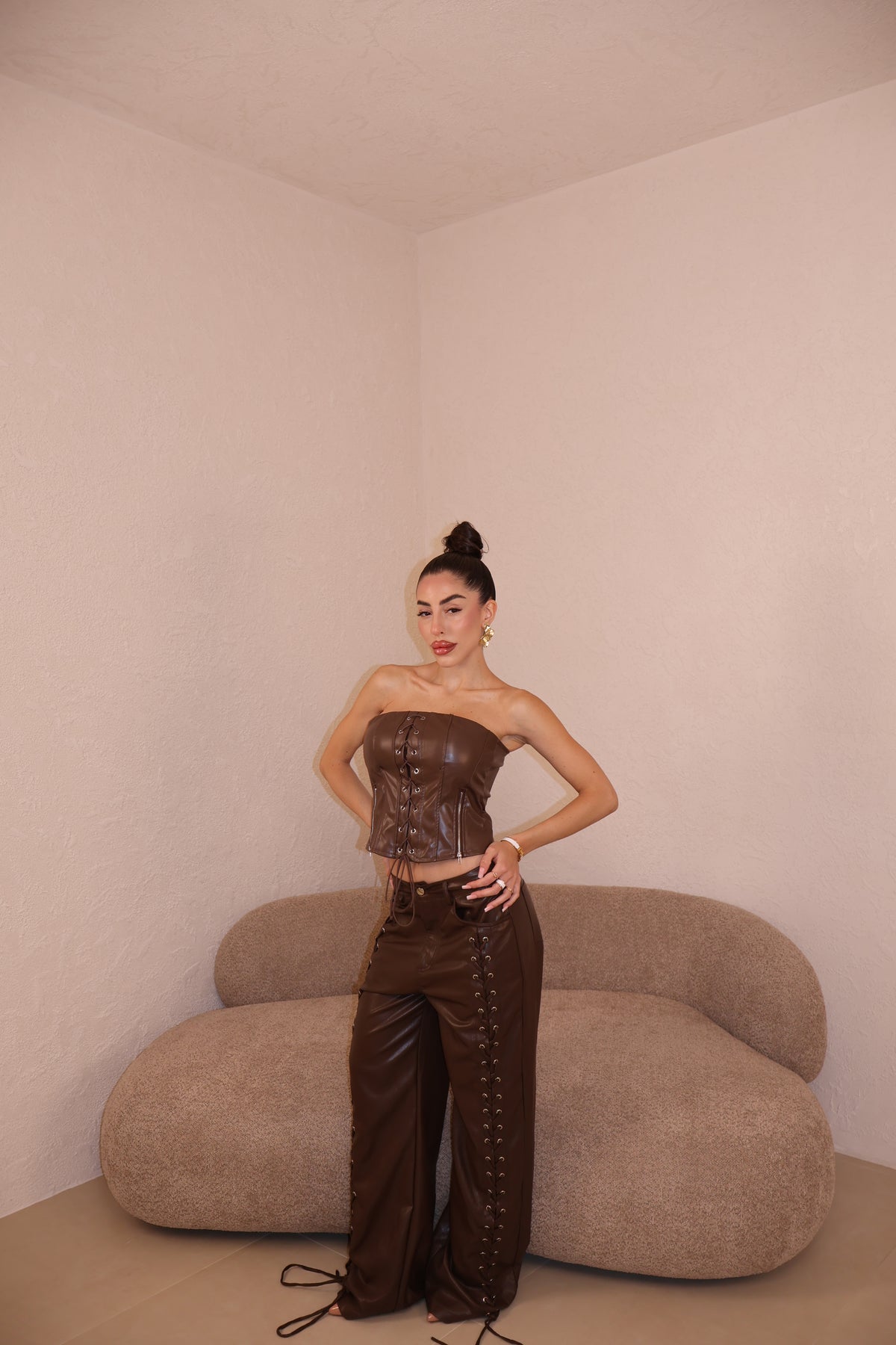 Prezzo unitario / perCorsetto in similpelle con dettagli stringhe e cerniere.