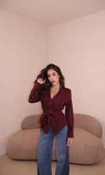 Prezzo unitario / perGiacca gessata con cintura in vita e spalline imbottite.