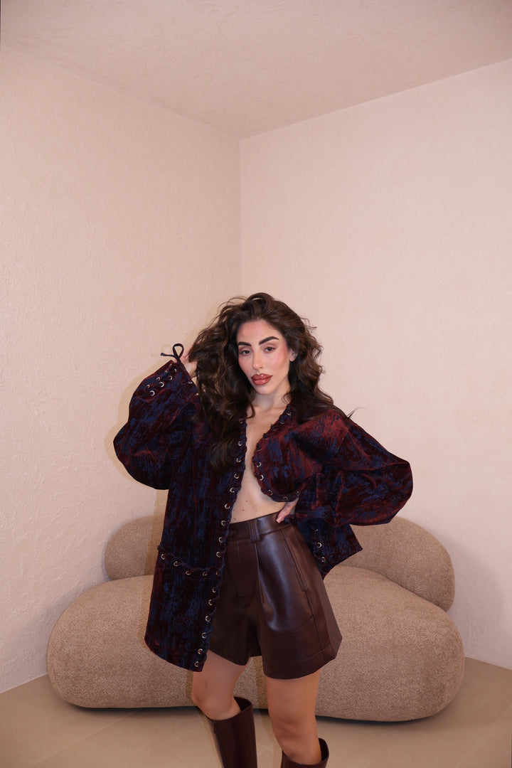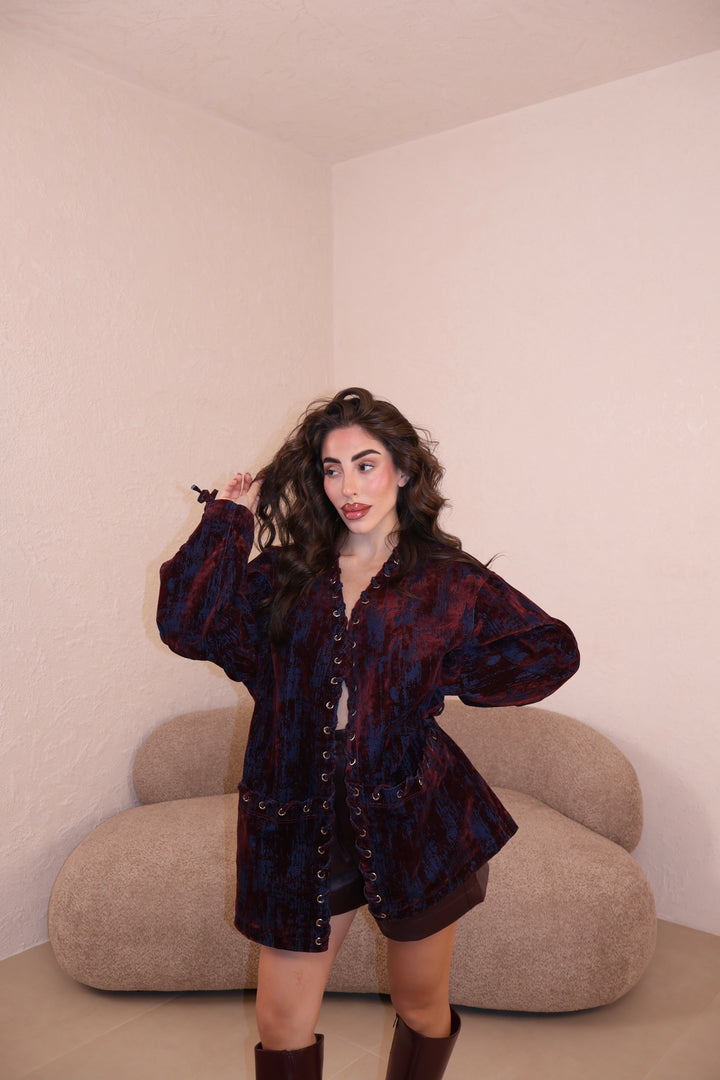 Giacca Over Chenille bordeaux
