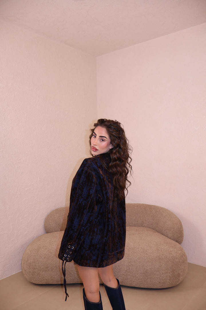 Giacca over con sfumature in ciniglia a contrasto e tasconi. Taglia unica.