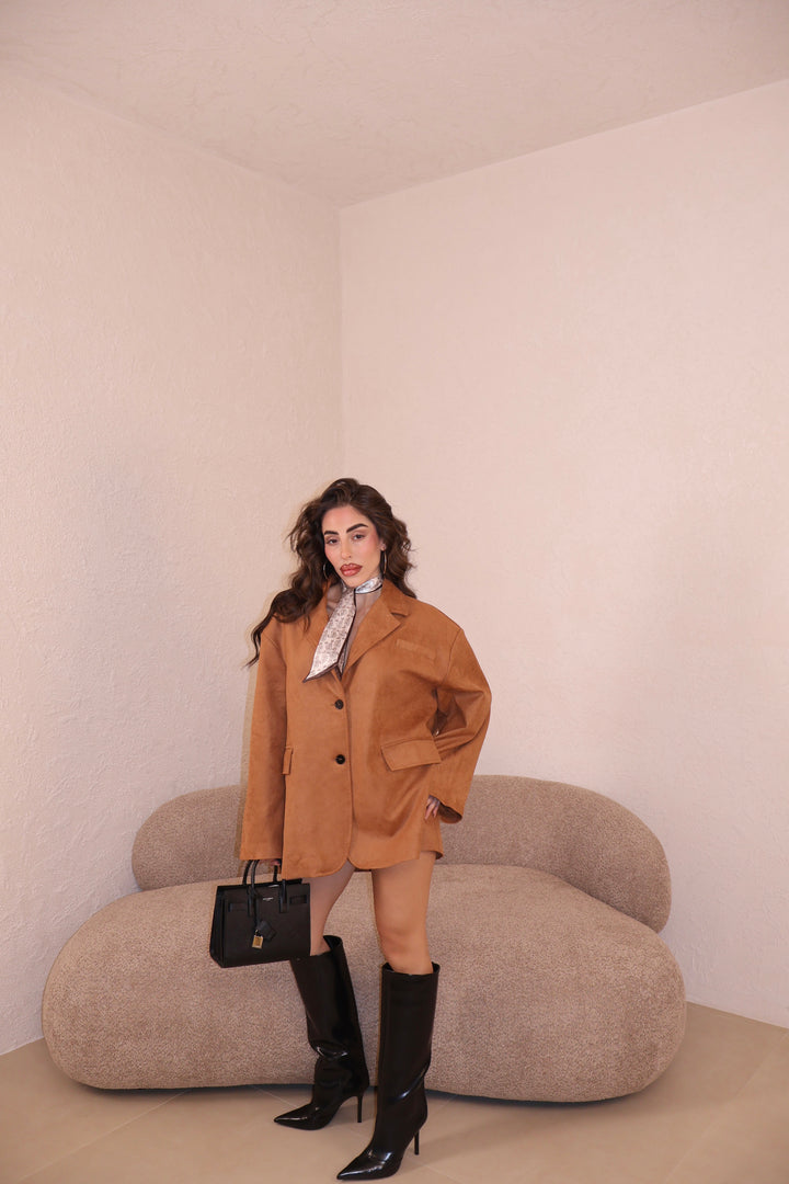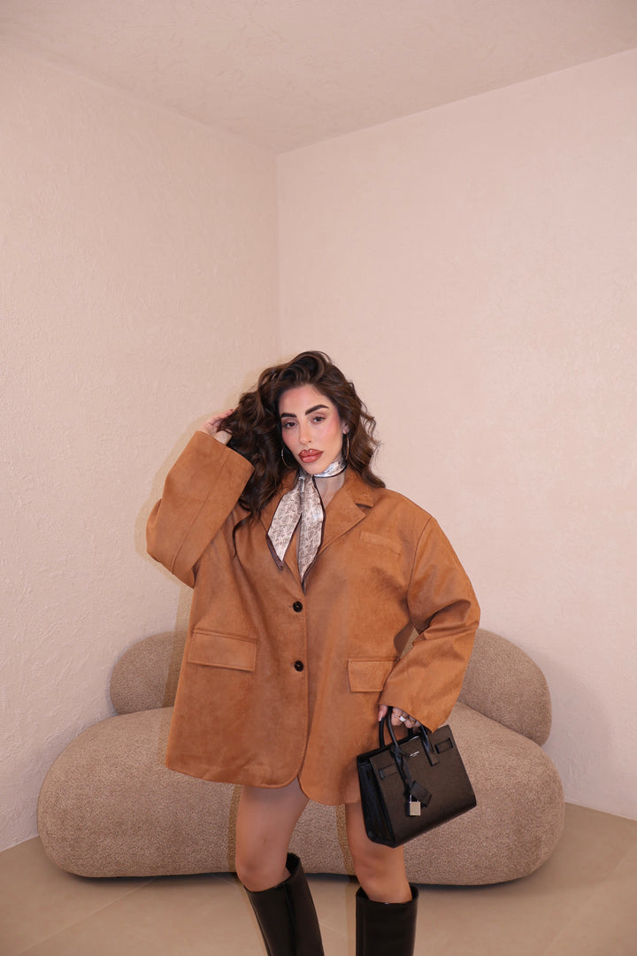 Giacca over in camoscio con spalline imbottite e bottoni frontali. Taglia unica.