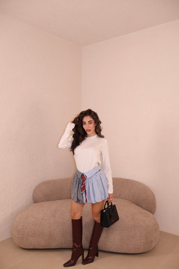 Gonna modello balloon con culotte e cravatta inclusi. La modella indossa taglia S.