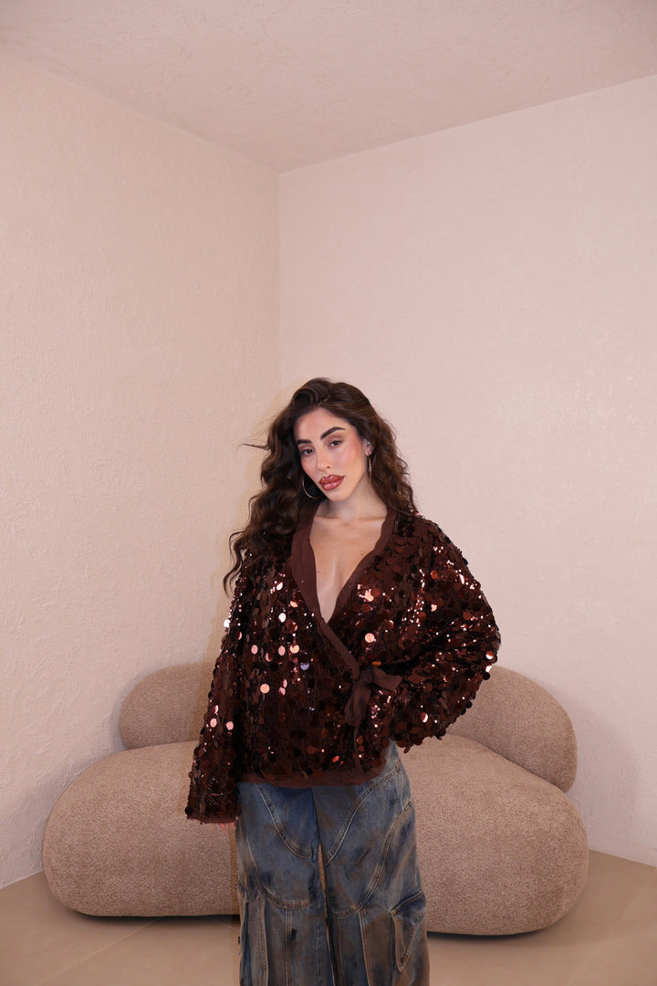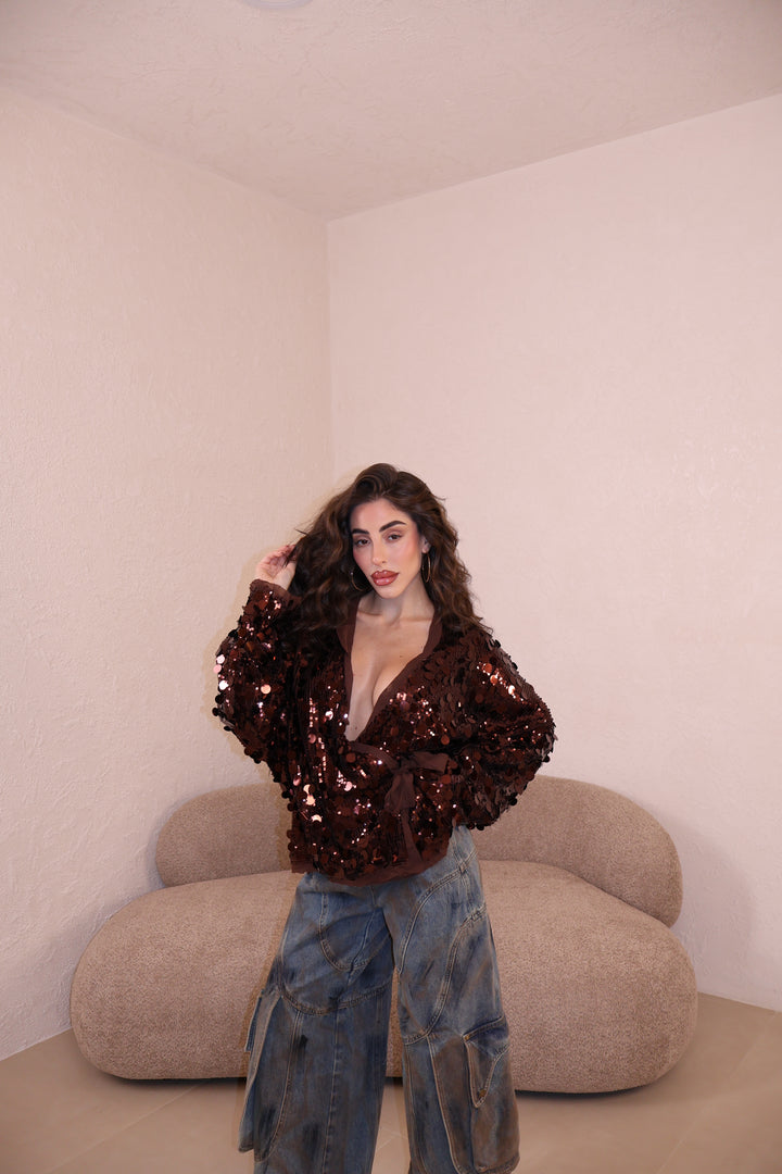 Incrociatina in paillettes con fodera interna. Taglia unica.