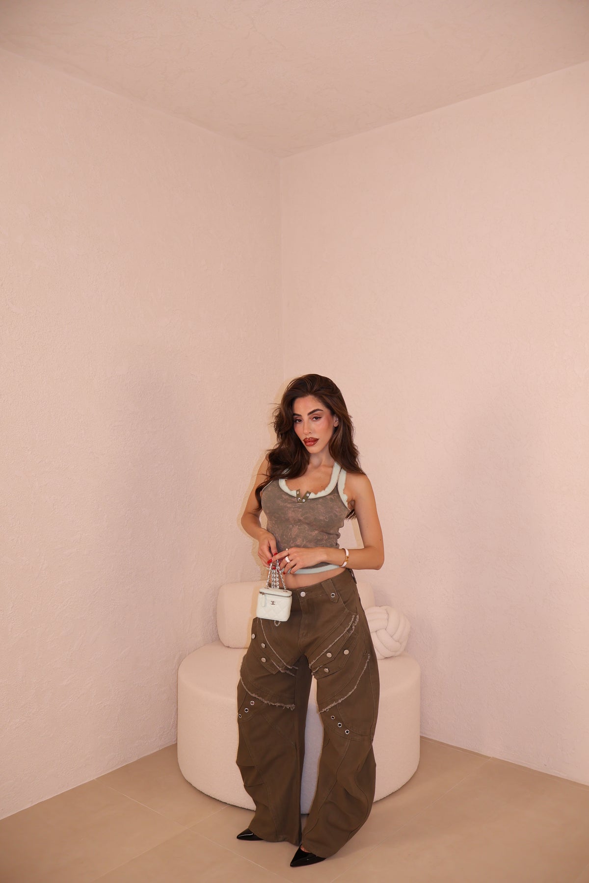 Il pantalone a palazzo ha passanti, l’elastico e piccoli spacchi lateralmente. Veste morbido/ leggermente largo. Con i tacchi è pazzesco. Grazie di tutto.❤️