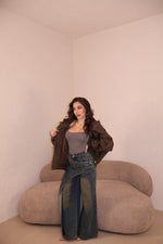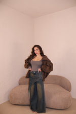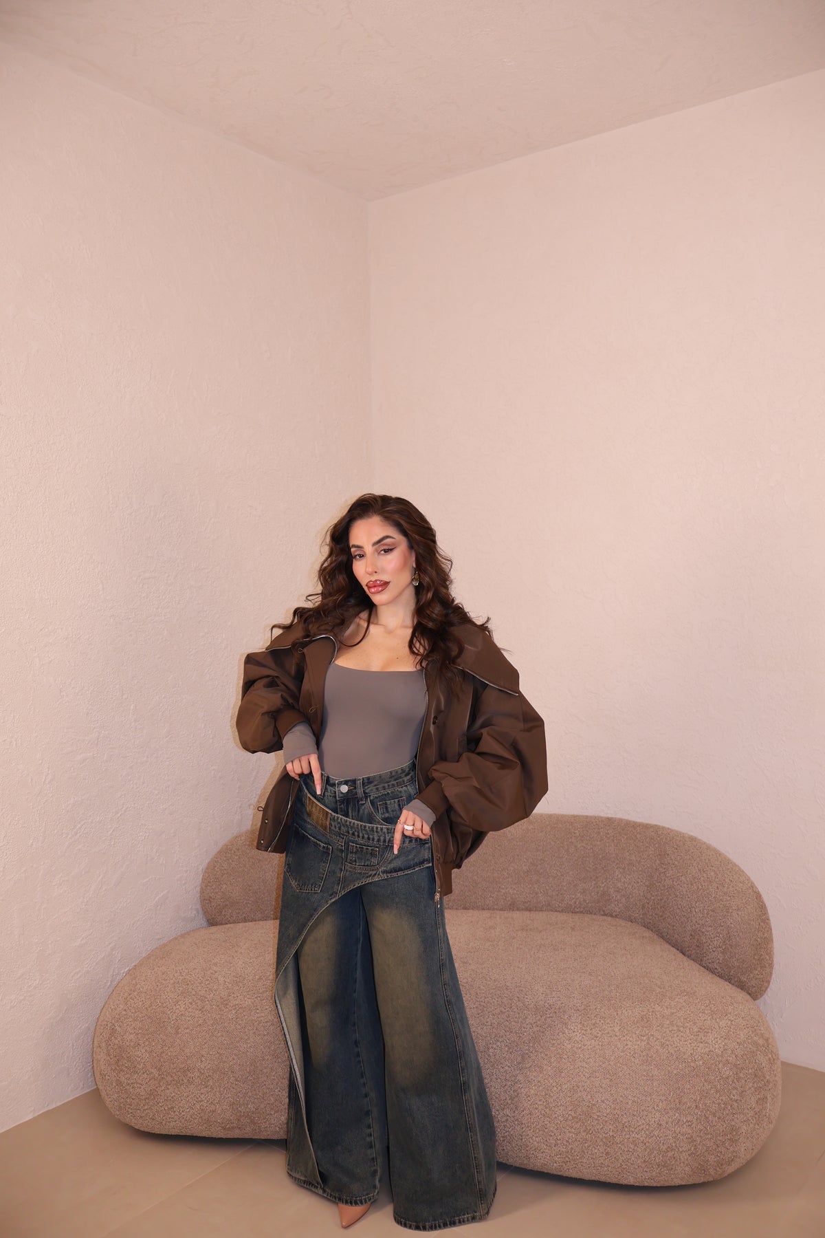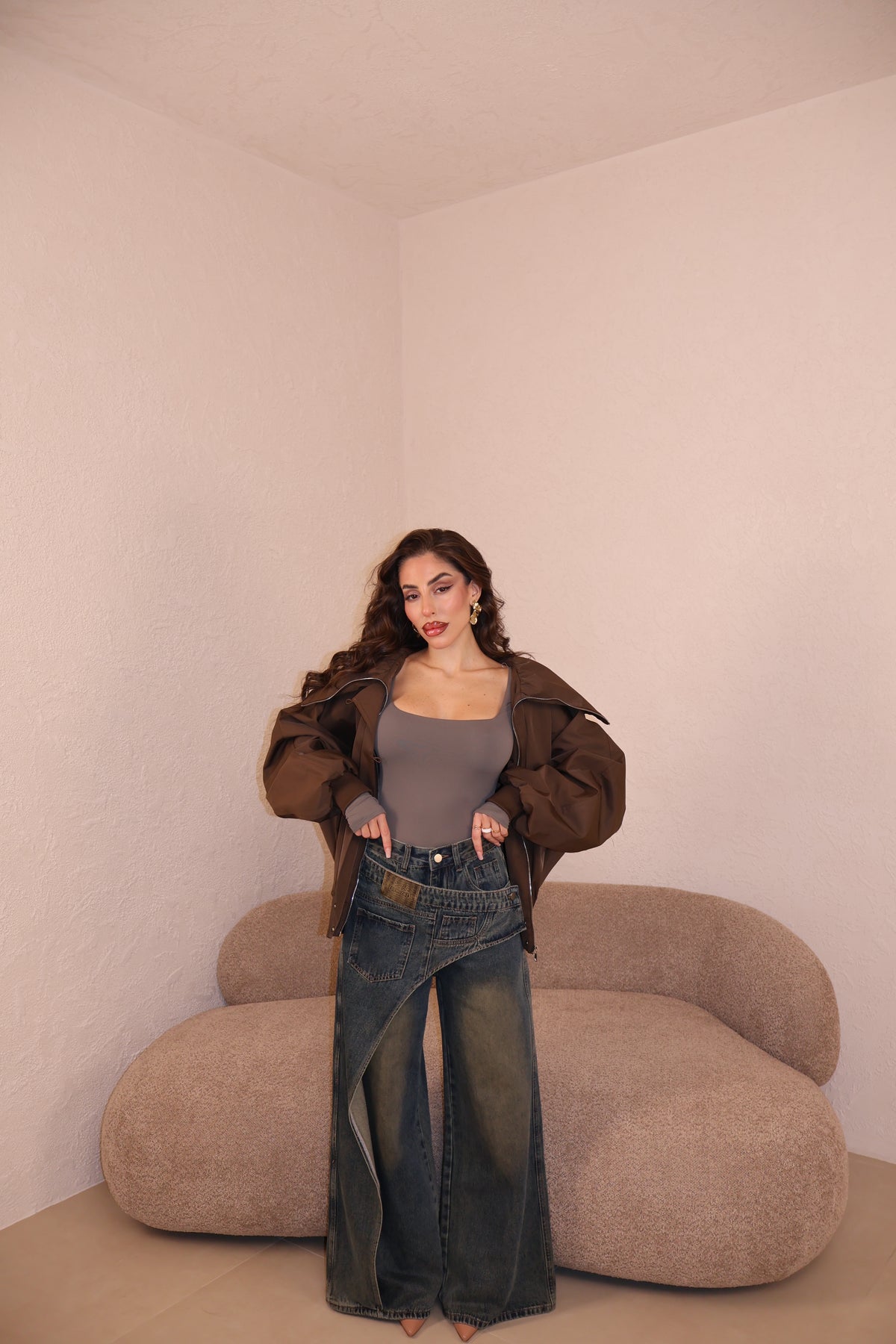 La giacca veste leggermente over ma con la cinta stretta in vita, è perfetta.