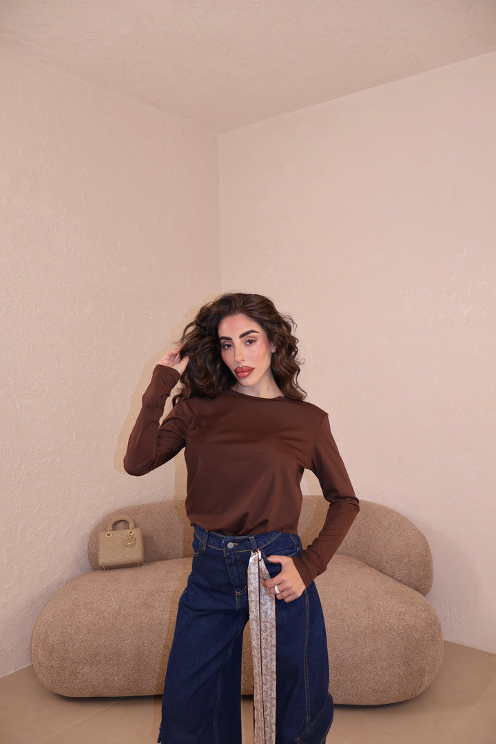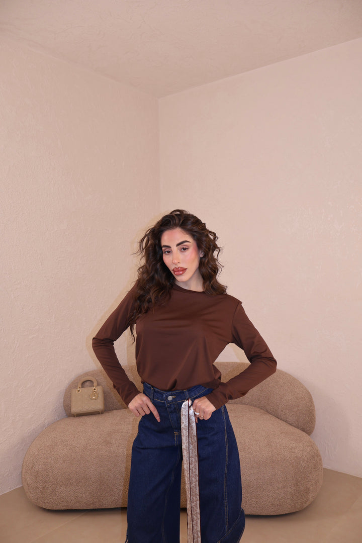 Maglia in cotone con spalline imbottite. La modella indossa taglia S/M.