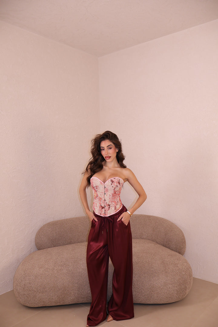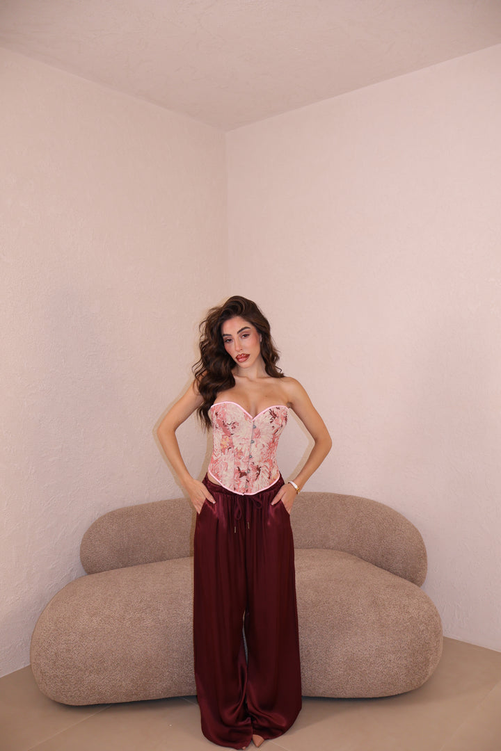 Pantaloni morbidi in raso con elastico in vita e laccetti regolabili. Taglia unica.