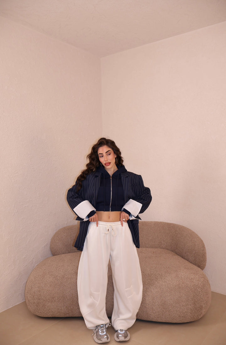 Pantaloni di tuta modello balloon con elastico e laccetti regolabili.
