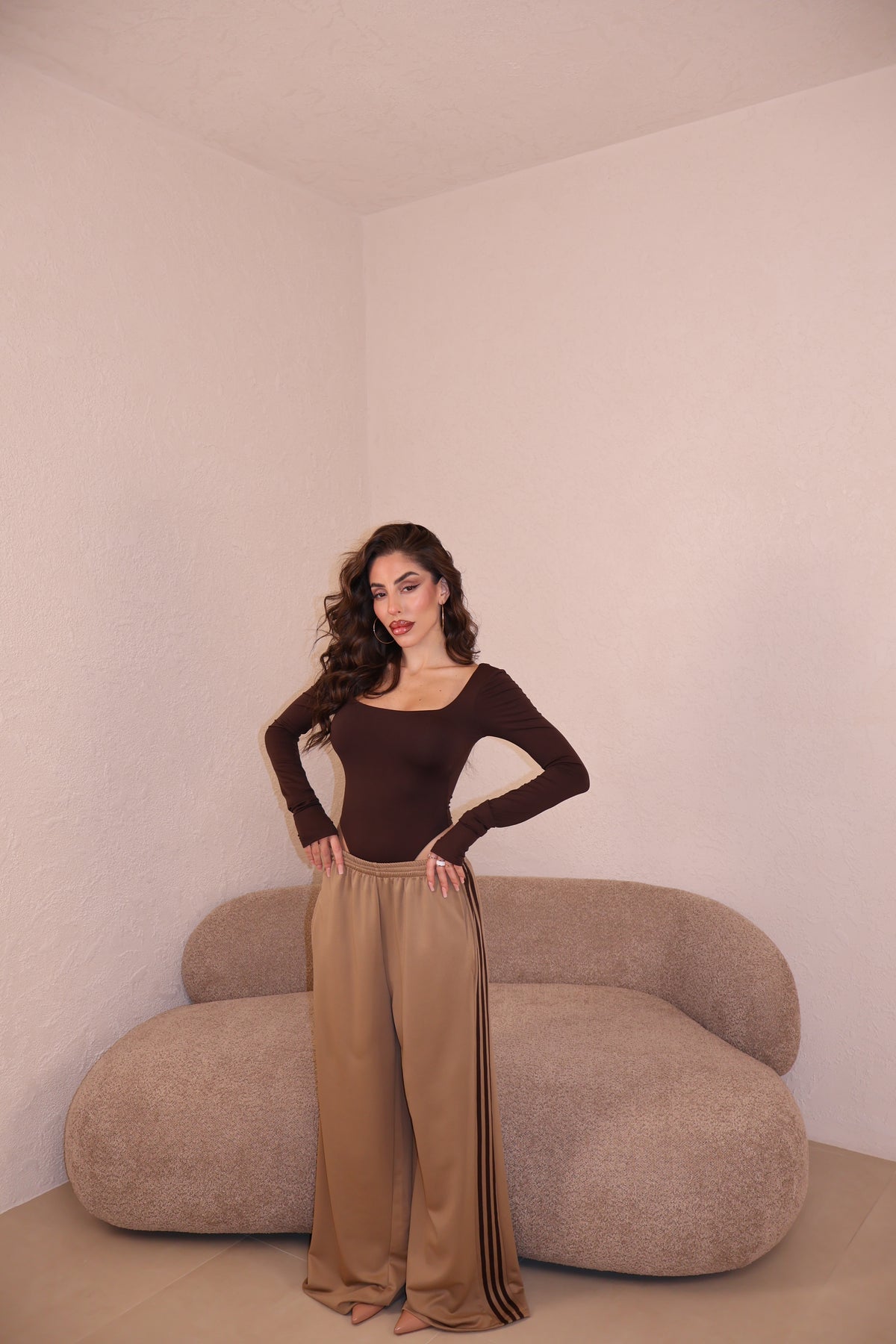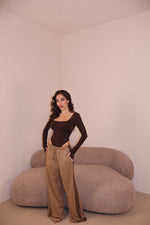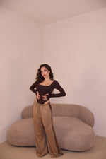 Il pantalone a palazzo ha passanti, l’elastico e piccoli spacchi lateralmente. Veste morbido/ leggermente largo. Con i tacchi è pazzesco. Grazie di tutto.❤️
