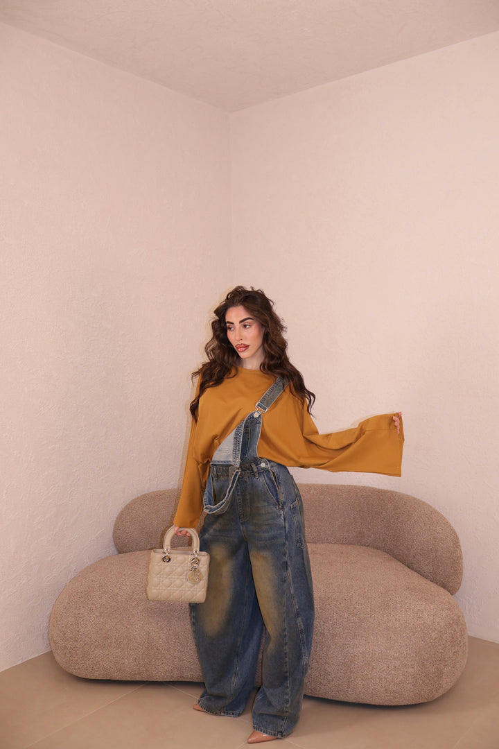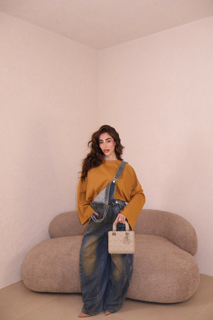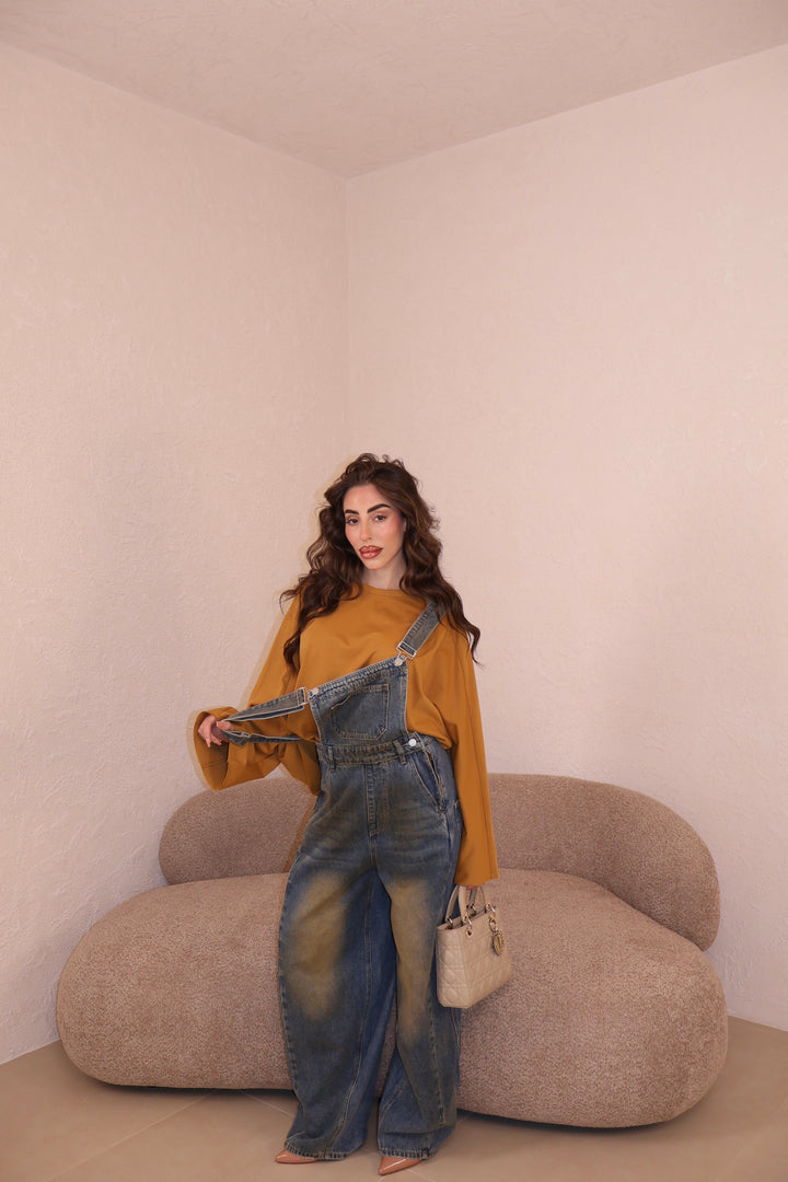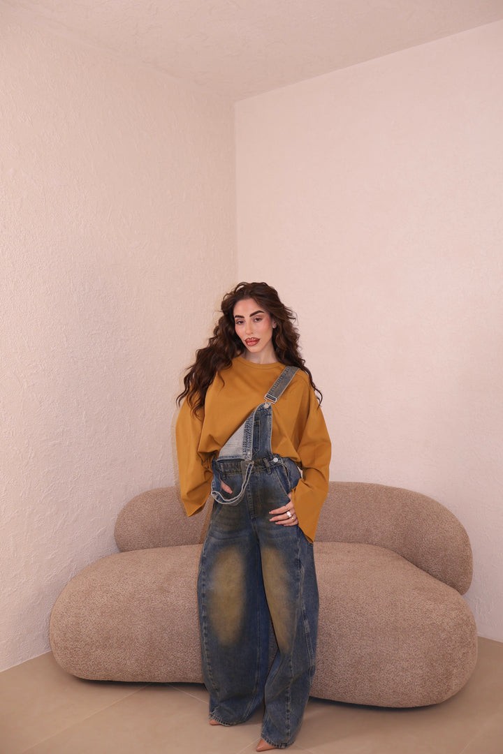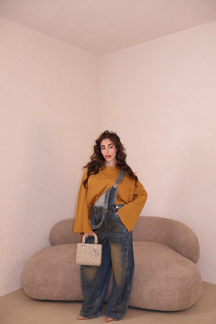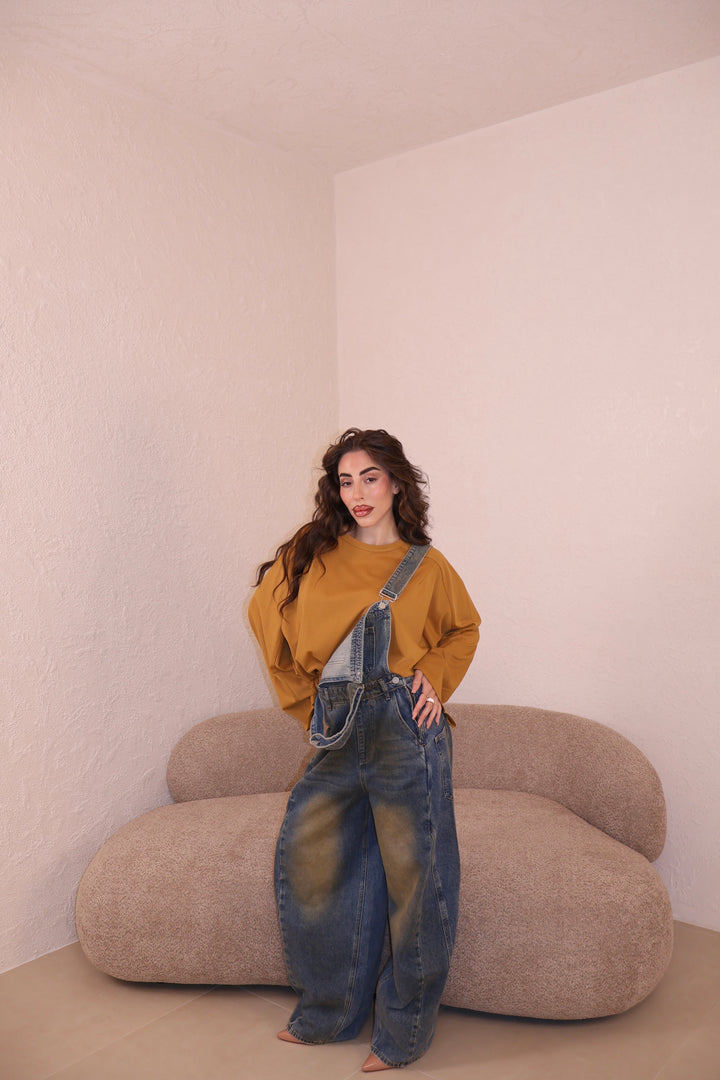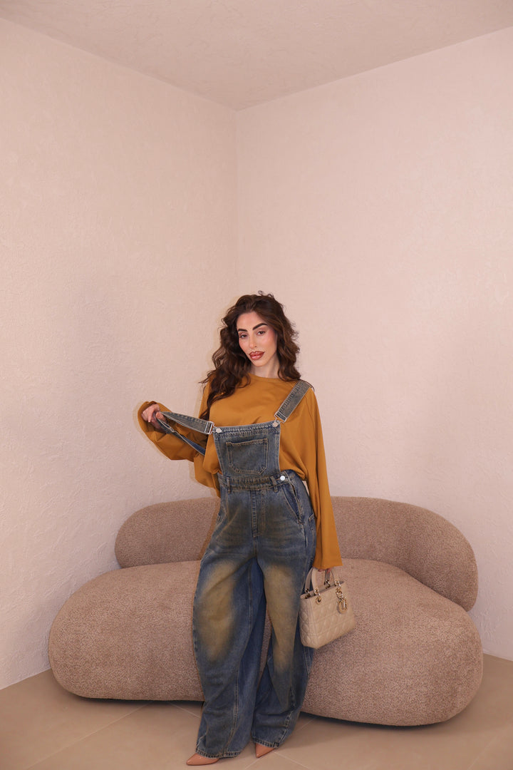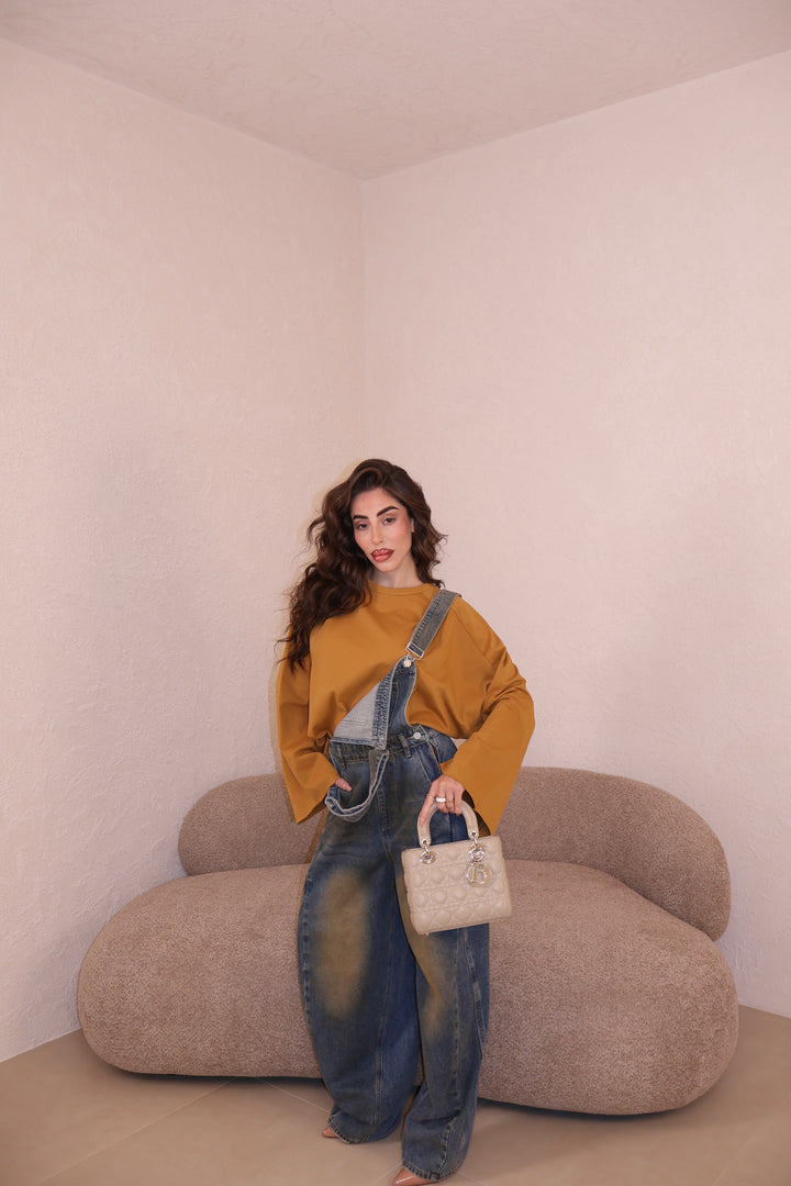 Salopette modello balloon con bretelle regolabili e cerniera laterale. Vestibilità regolare. La modella indossa taglia S.